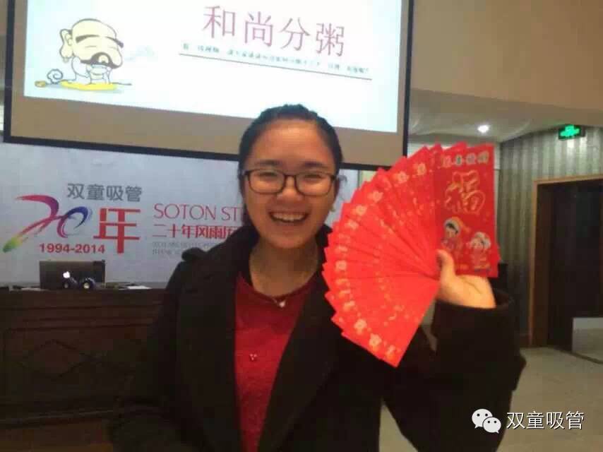 昨天晚上,我們雙童吸管2015年的學(xué)習會(huì )終于在萬(wàn)眾期待下開(kāi)始了!照理說(shuō)這已經(jīng)是我們的第56期學(xué)習會(huì )了,怎么還被萬(wàn)眾期待呢?原來(lái),大家早就在吸管妞的宣傳下得知,昨天晚上的學(xué)習會(huì ),當家人可是準備了許久,不僅有重量級干貨要分享,而且還想玩點(diǎn)大的,把自己的講師紅包都貢獻出來(lái)分享啦!看,吸管妞作為學(xué)習會(huì )的開(kāi)場(chǎng)主持人,手拿著(zhù)厚厚一疊的紅包,別提有多開(kāi)心了!