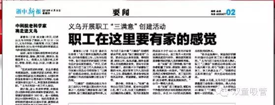 據悉,8月底,義烏市總工會(huì )將根據基層工會(huì )推薦上報情況,深入企業(yè)對照標準實(shí)地審核驗收,從中評選出20家職工“三滿(mǎn)意”示范點(diǎn),給予表彰和一定的獎勵。