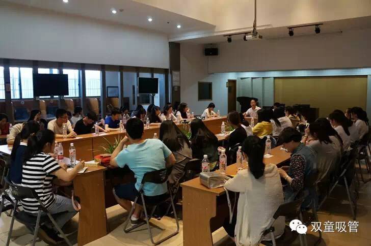 參觀(guān)完畢,大家就坐下來(lái)好好和當家人進(jìn)行溝通互動(dòng)吧!童鞋們紛紛把剛才參觀(guān)時(shí)所產(chǎn)生的疑慮和困惑一一向當家人進(jìn)行提問(wèn)?!叭绻麃?lái)你們公司實(shí)習,你們看重員工的什么素質(zhì)呢?”“雙童是如何保持源源不斷的創(chuàng )新能力呢?”“雙童的商標背后有沒(méi)有什么故事?”各種千奇百怪的問(wèn)題都被童鞋們提了出來(lái),而當家人則是把每個(gè)問(wèn)題都解釋得清晰明了,童鞋們也是拿著(zhù)筆記把各種數據和關(guān)鍵詞都記了下來(lái),據說(shuō)回去還要交報告和作業(yè)呢!這么認真,也是拼啦!