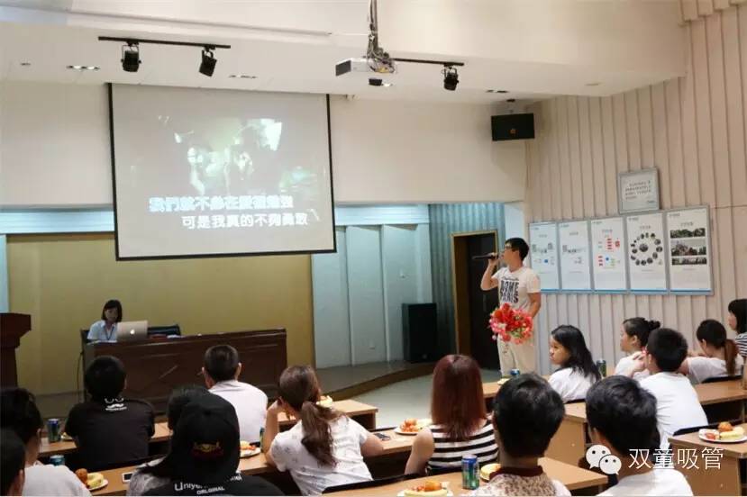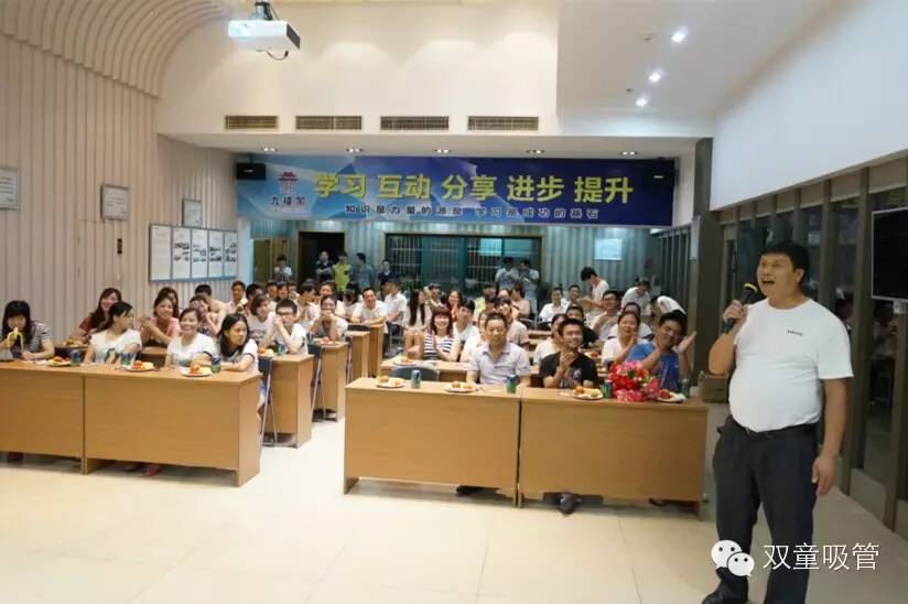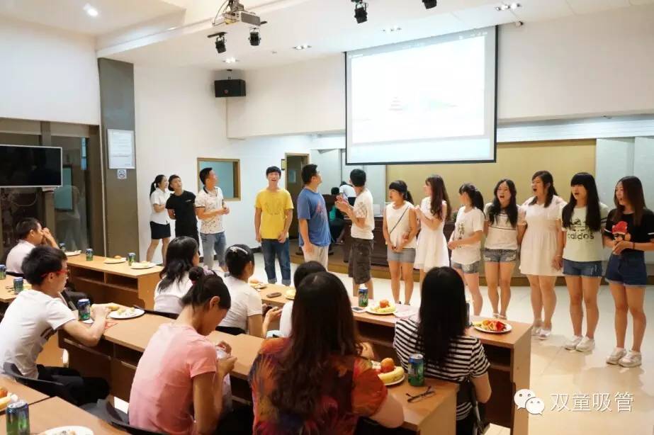 晚上七點(diǎn),雙童七月份的壽星們都團聚在九樓閣啦!四五十位的壽星們在享用了公司為他們準備的美味長(cháng)壽面和玉米排骨湯后,像小學(xué)生似的齊刷刷坐在了座位上,等待一場(chǎng)盛會(huì )的來(lái)臨!
