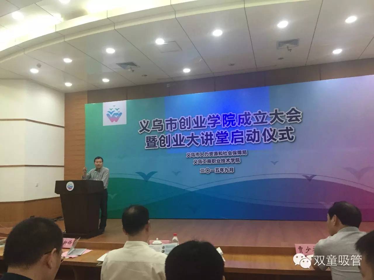 義烏市副市長(cháng)王新鋒到場(chǎng)致辭,工商學(xué)院副書(shū)記、副院長(cháng)賈少華教授主講創(chuàng )業(yè)大講堂。創(chuàng )業(yè)學(xué)院聘任了12位首批創(chuàng )業(yè)導師,我們當家人樓總也在此行列中!