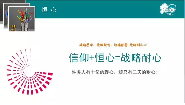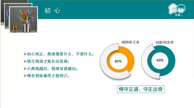 當家人樓總的此次分享,從“雙童”是如何成為隱形冠軍“及當家人樓總對自身的定位出發(fā),圍繞著(zhù)”匠人之心“這個(gè)主題,將當家人對企業(yè)、制造業(yè)的思考和看法都講得非常透徹!以下是部分課件內容,吸管妞也大方分享給大家啦!