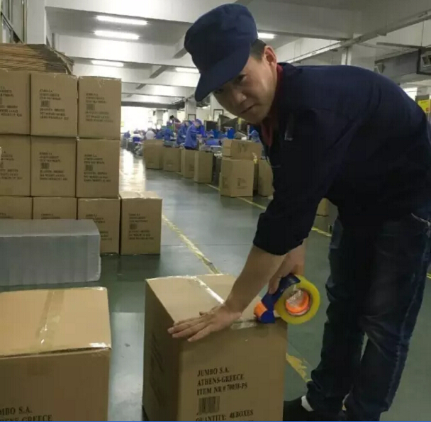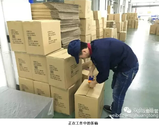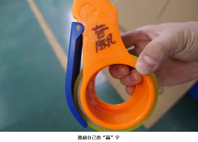 在二車(chē)間一通尋找,吸管妞才發(fā)現了張楠。他笑著(zhù)說(shuō):“我不是在封箱,就是在去封箱的路上,不好找哦!”2013年,從西安來(lái)義烏找工作的張楠進(jìn)入雙童,在二車(chē)間從事封箱的工作。談起當初進(jìn)雙童的時(shí)候,張楠會(huì )心一笑:“這都是緣分??!在市場(chǎng)上看到“雙童”的招聘信息,因此和雙童結緣,在此扎根?!鼻魄葡旅孢@個(gè)可是張楠“吃飯的家伙”——封箱膠帶機,上面寫(xiě)著(zhù)一個(gè)字:“贏(yíng)”。問(wèn)其意義,張楠表示這是“愛(ài)拼才會(huì )贏(yíng)”的意思,他只想把自己手頭的工作做好做精,以此來(lái)激勵自己。
