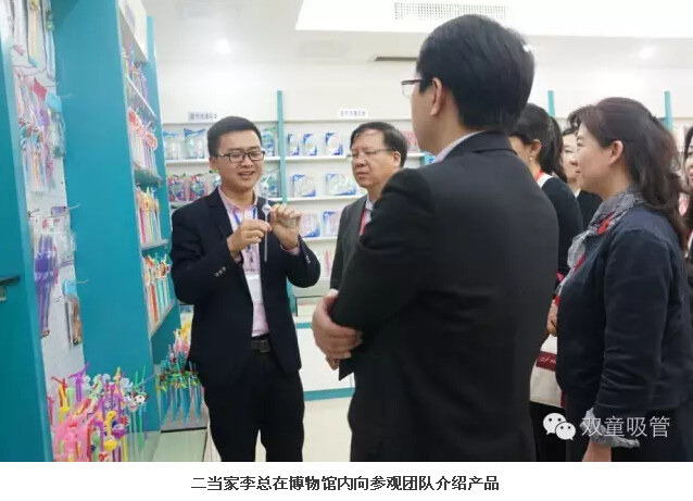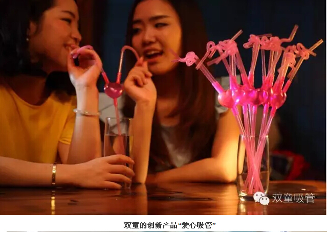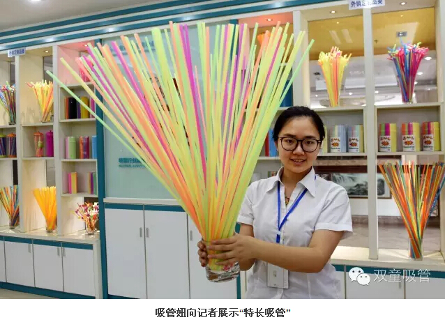 “其中,有30多種是近年開(kāi)發(fā)的新產(chǎn)品。”李二橋說(shuō),陳列的各式各樣吸管,既有幾厘一支的,也有10元一支的。他拿起一款叫做“風(fēng)車(chē)吸管”的產(chǎn)品,只見(jiàn)吸管的中上部安裝著(zhù)一個(gè)透明的球體,球體內懸著(zhù)一只小小的風(fēng)車(chē),吮吸飲料,里面的風(fēng)車(chē)就會(huì )快速旋轉。“剛開(kāi)發(fā)出來(lái)時(shí),由員工的子女進(jìn)行了試用,孩子們都把它們當成了玩具,這是一款十分具有個(gè)性特點(diǎn)的產(chǎn)品。‘雙童吸管’類(lèi)似的創(chuàng )新產(chǎn)品有40多類(lèi),總計300多種。”