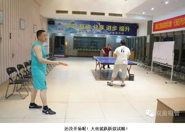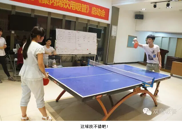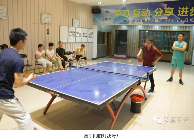 5月27日晚七點(diǎn)半,一場(chǎng)精彩的乒乓球賽在“雙童”九樓閣舉行!為了不受外面風(fēng)力的阻擾,男同胞們就把球桌搬到了室內,一下就占據了九樓閣的的正中心,成為全場(chǎng)的焦點(diǎn)。這不,還沒(méi)開(kāi)始呢!乒乓球迷們就忍不住先練練手啦!下面吸管妞就帶大家看看現場(chǎng)的盛況吧!