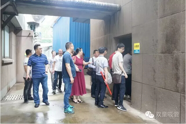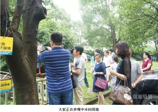 來(lái)者皆是客,當家人樓總自然也是全情奉獻,熱情接待。一行人先是來(lái)到了我們的中水回收池,樓總給眾人講解了我們雙童的廢水循環(huán)利用的系統和原理,之后又參觀(guān)了雨水收集處、垃圾分類(lèi)站等地。眾人對雙童這種生態(tài)循環(huán)、為社會(huì )節約資源的做法點(diǎn)了一個(gè)大大的贊。