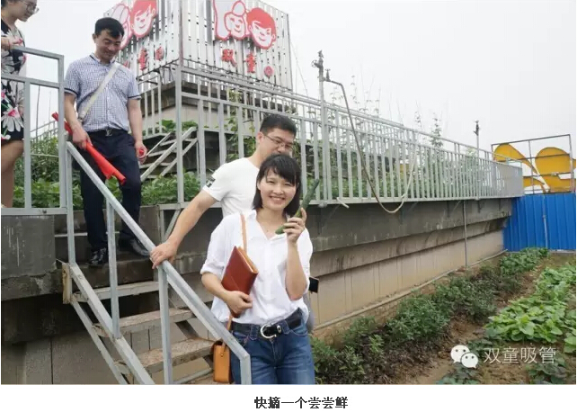 看到如此原生態(tài)的小黃瓜,我們的小太陽(yáng)老師也忍不住啦!來(lái)!先摘一個(gè)嘗嘗鮮!值得一提的是“空中菜園”的總面積有近800平方米,每個(gè)種植區的土層均有1米2深,看到這里大家紛紛開(kāi)始敬佩樓總對工廠(chǎng)的設計。
