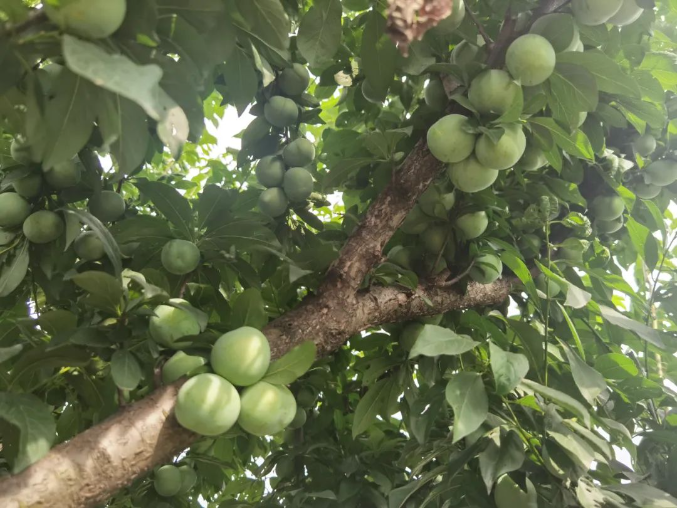 魚(yú)塘旁邊的李子樹(shù)也不負眾望,在水邊因為沒(méi)有其他高大樹(shù)木的遮擋,光照充足,有了絕佳的生長(cháng)機會(huì ),看這些李子個(gè)個(gè)長(cháng)得快有小孩的拳頭大了,就是不知道味道怎么樣呢?