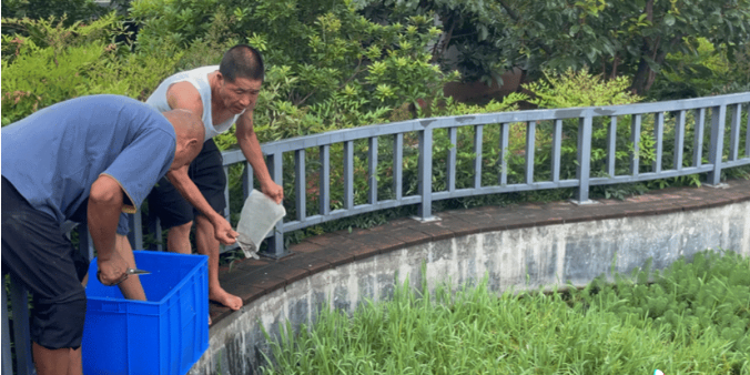 抓住他們真是費了不少勁!在經(jīng)過(guò)后勤小姐姐們的細心消毒后,終于可以投放啦,看著(zhù)一袋又一袋塑料網(wǎng)被解開(kāi),小甲魚(yú)們紛紛扎入池塘當中。吸管妞已經(jīng)默默期盼著(zhù)來(lái)年收獲一大堆甲魚(yú)蛋啦~~