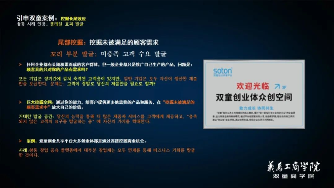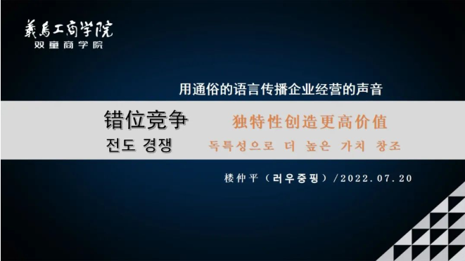 為了讓韓國學(xué)員,能夠充分領(lǐng)會(huì )到相關(guān)理念。樓仲平舍棄了大量的學(xué)術(shù)性知識要點(diǎn),通過(guò)結合實(shí)際行業(yè)分析現狀、研習方案,為同學(xué)們打開(kāi)了市場(chǎng)的錯位競爭的全新思路。