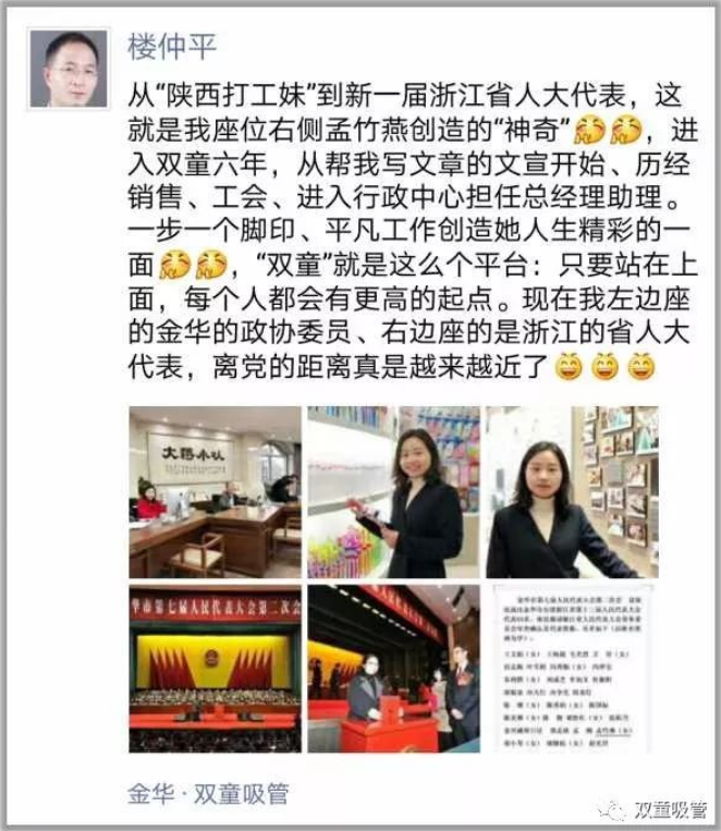 2010年10月,21歲的陜西打工妹孟竹燕來(lái)到義烏闖蕩,應聘后進(jìn)入“雙童”擔任文宣部微博管理員一職。實(shí)際上,當時(shí)的制造業(yè)企業(yè)中鮮少有專(zhuān)門(mén)從事新媒體的崗位,而“雙童”樓仲平卻認知到新媒體運營(yíng)和品牌推廣對企業(yè)宣傳的重要性,重視微博平臺運營(yíng),并將當時(shí)的微博管理員孟竹燕帶在身邊手把手培養。
