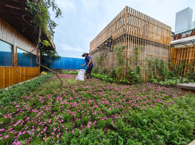 上圖是空中花園的春景圖,怎么樣?風(fēng)景是不是絢麗極了~畢竟在當年規劃這片土地時(shí)可廢了不少心思呢!看下面這張圖,是2019年園丁們移植繡球花的照片。經(jīng)過(guò)精心培育呵護,只花了一年多時(shí)間,這里就成為了客人們的游學(xué)打卡點(diǎn)!
