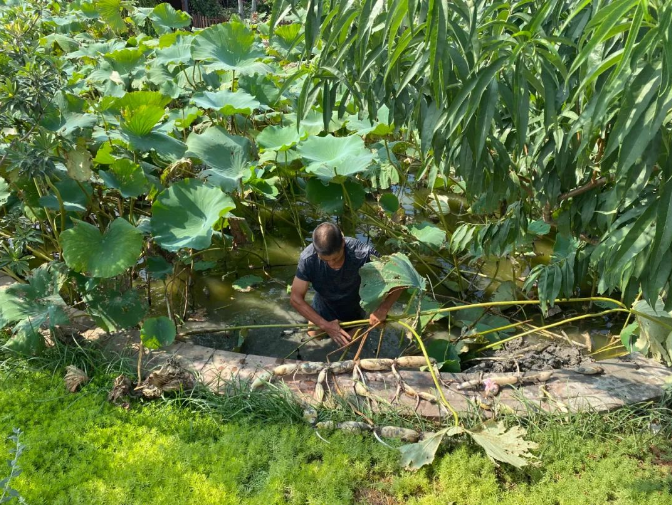 ▲ 挖藕可真是個(gè)體力活,沒(méi)一會(huì )園丁就大汗淋漓