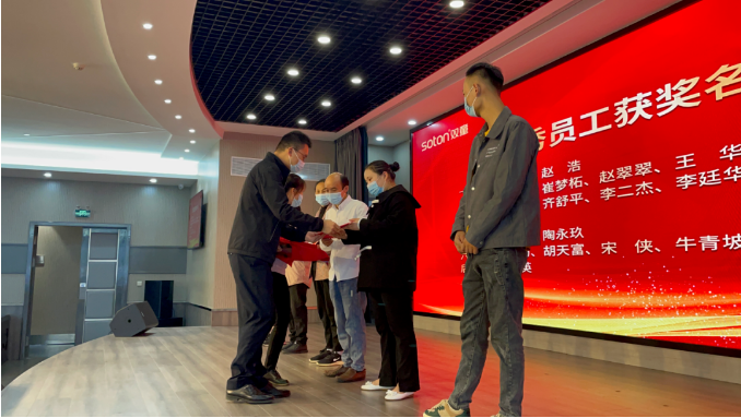 大會(huì )的第一項議程就是表彰優(yōu)秀員工,在2022年第三季度,共有22名一線(xiàn)員工表現優(yōu)異。他們有的在崗位上兢兢業(yè)業(yè),有的是班組產(chǎn)量排名第一名,有的則是在季度工作中有突出貢獻······不論何時(shí)入職,只要足夠優(yōu)秀,他們都是值得表彰、值得學(xué)習的典范。