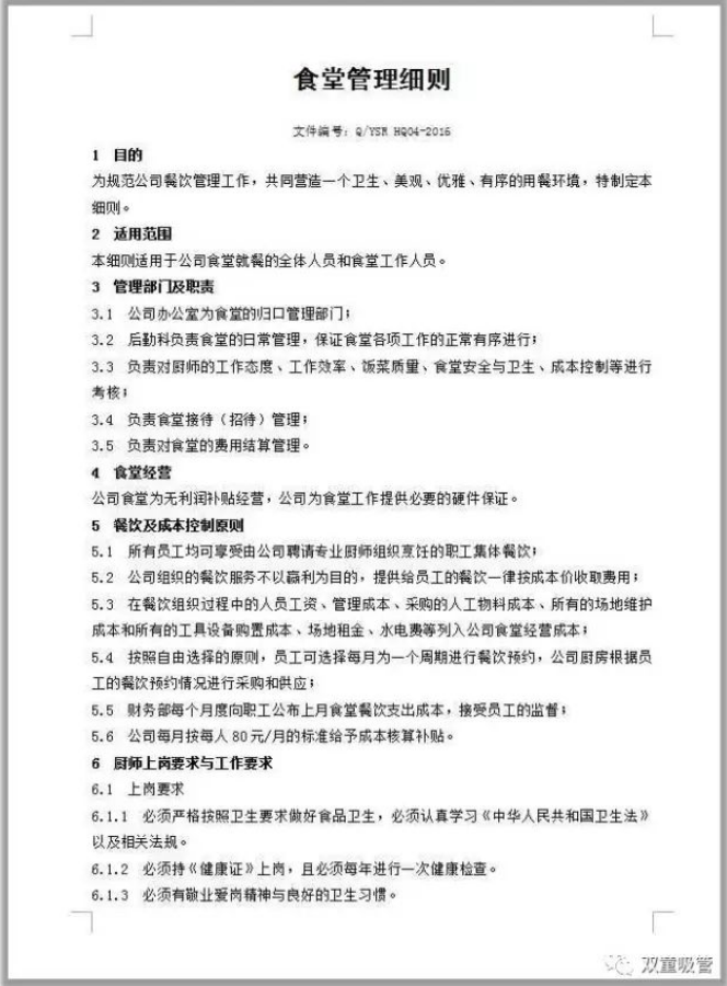 “雙童”食堂管理細則,涉及到餐飲管理的各個(gè)方面