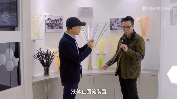 視頻截圖 | 樓仲平為主持人介紹吸管專(zhuān)利