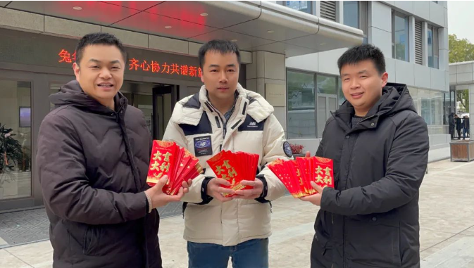印著(zhù)“大吉大利”的紅包,預示著(zhù)好兆頭,給大家帶來(lái)新年的好運,這也給開(kāi)工儀式帶來(lái)了更多的歡樂(lè )和喜悅!