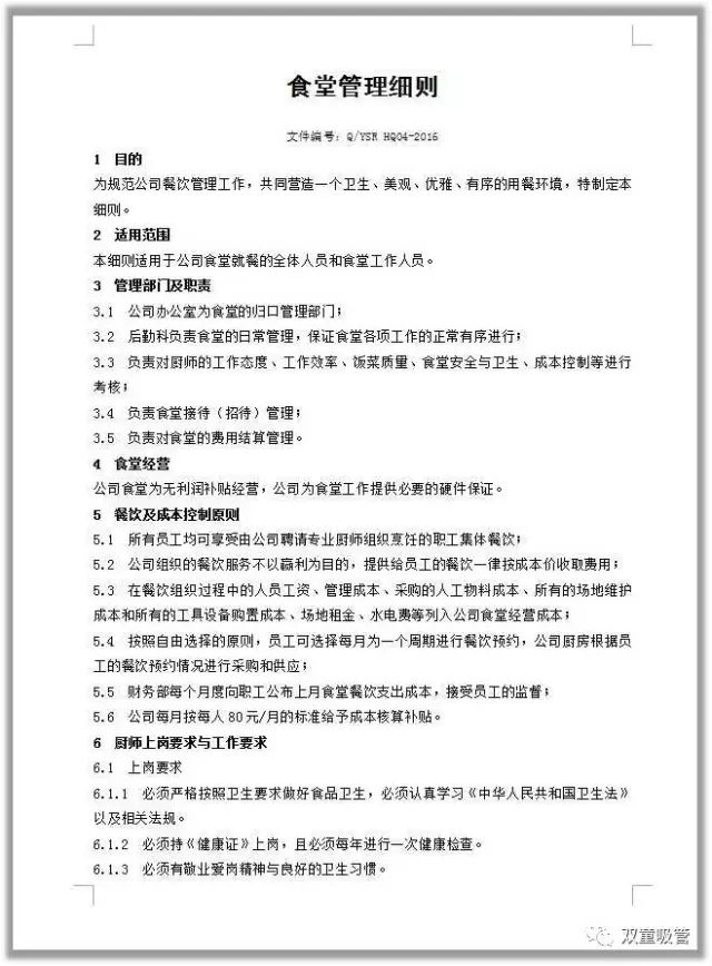 “雙童”食堂管理細則,涉及到餐飲管理的各個(gè)方面