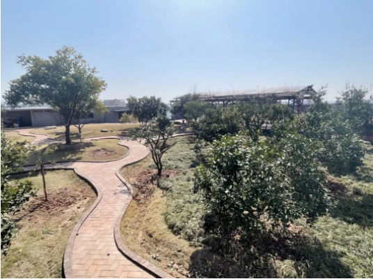 吊機把一棵棵果樹(shù)送上“雙童”二期廠(chǎng)房樓頂