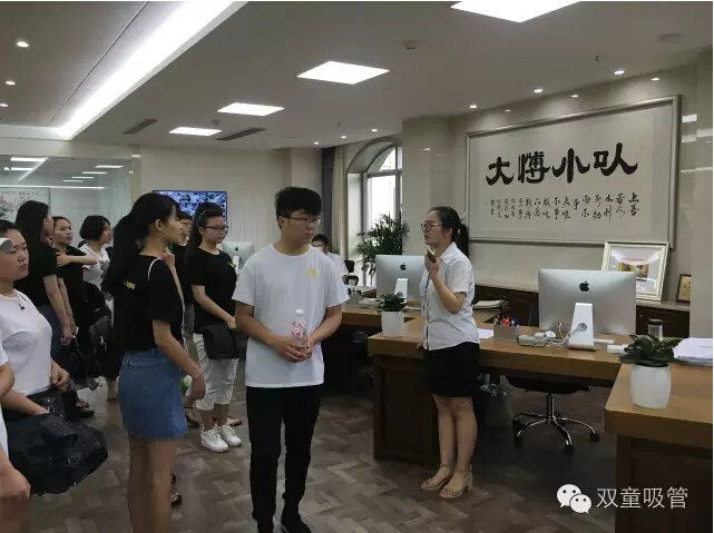既然是酒店管理專(zhuān)業(yè)的學(xué)生,他們對“雙童”最大的關(guān)注點(diǎn)就在于如何做好精細化管理工作。于是,吸管妞也帶領(lǐng)他們參觀(guān)了我們最新裝修的集體辦公區。細膩簡(jiǎn)約、極致精細的辦公環(huán)境里,七八十號行政員工都在這里進(jìn)行集中辦公,連當家人樓總和幾位高層領(lǐng)導都從獨立辦公室里解放出來(lái),坐在一起辦公啦!