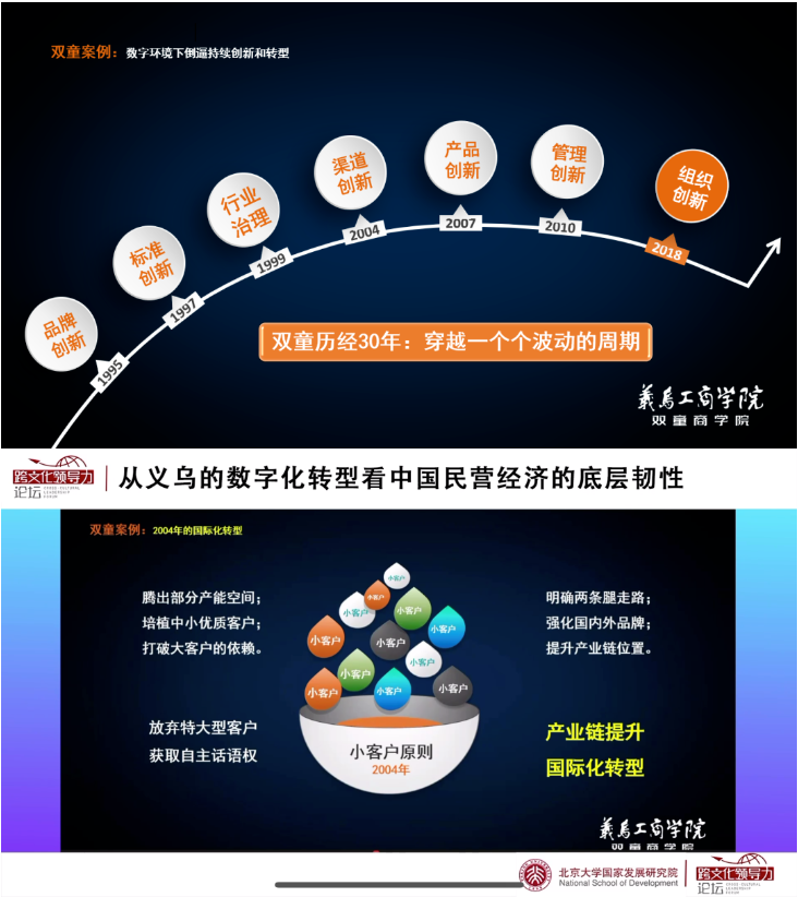 近期,“雙童”樓仲平受北大國發(fā)院邀請,在跨文化領(lǐng)導力論壇做線(xiàn)上直播《從義烏的數字化轉型看中國民營(yíng)經(jīng)濟的底層韌性》課程。這堂直播課上,樓仲平從中國造隱形冠軍的視角,帶領(lǐng)大家感受中國民營(yíng)經(jīng)濟的國際化轉型,及其歷次轉型中展現出來(lái)的底層韌性。
