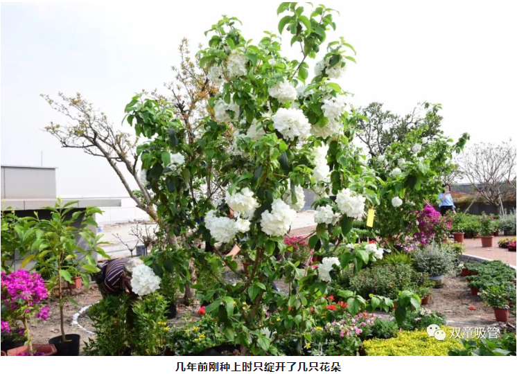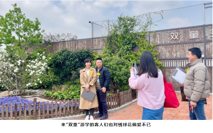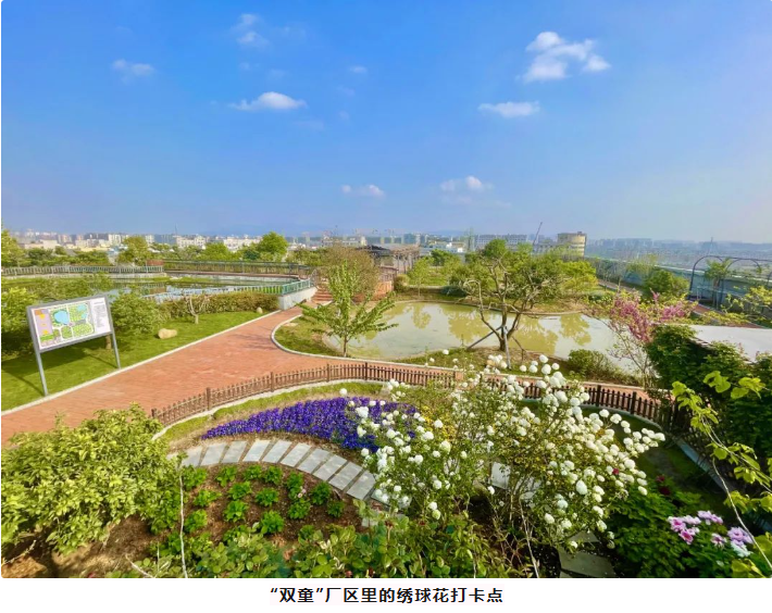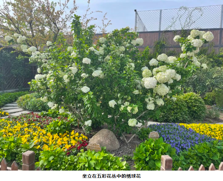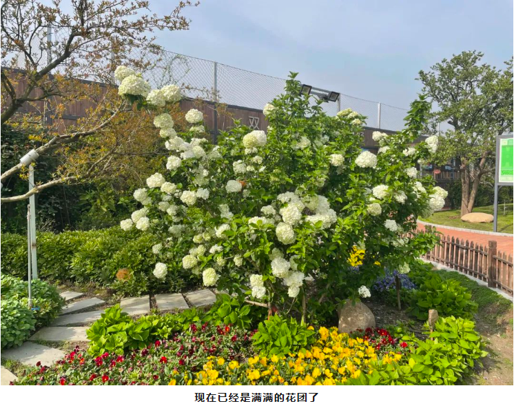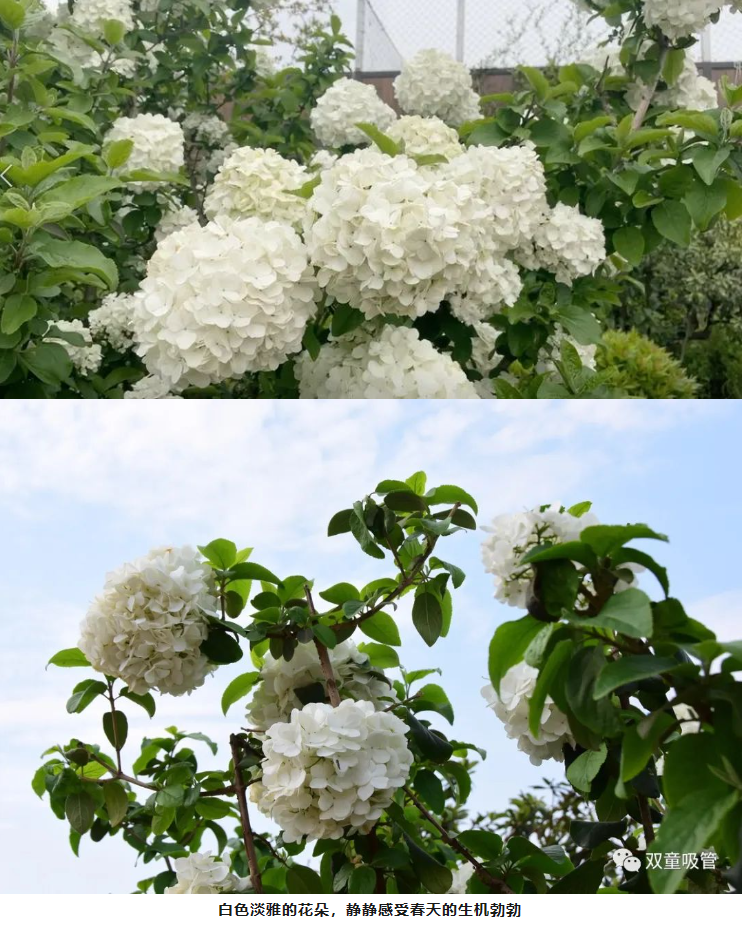 一進(jìn)入“雙童”空中花園,就能看到群花斗艷。在萬(wàn)紫千紅里,一顆白色的花樹(shù)尤其顯眼。繡球花盛開(kāi)在春季,其余時(shí)間都是綠色枝丫。每年的四月是最佳觀(guān)賞期,也就是說(shuō),現在想一覽好風(fēng)光的可要抓緊時(shí)間啦!