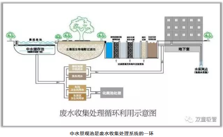 “雙童”的中水景觀(guān)湖可不單單是美化環(huán)境這么簡(jiǎn)單,而是作為廢水收集處理循環(huán)回用系統的重要一環(huán)。