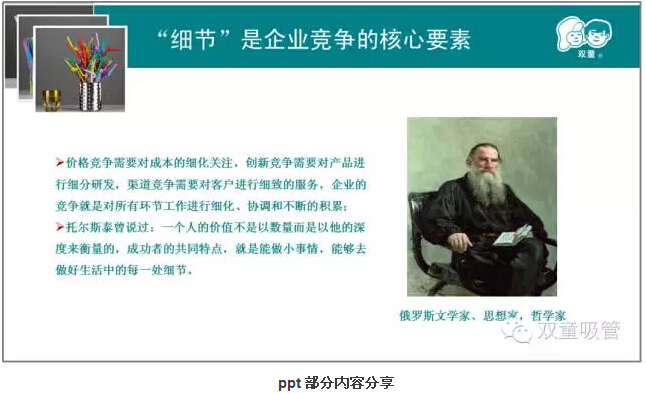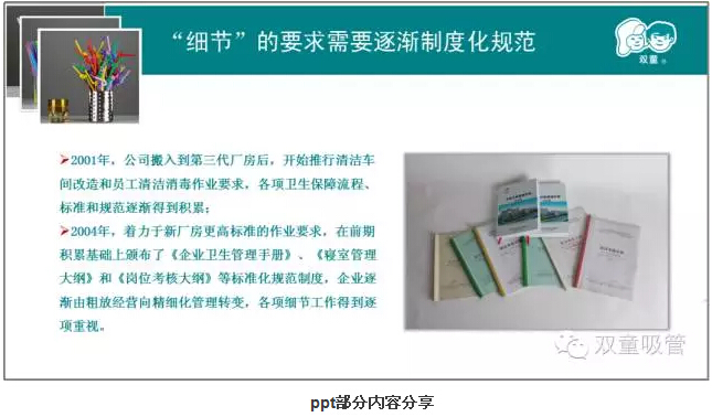 第二章則是本次課程的重中之重。樓總結合我們“雙童”自身的真實(shí)案例,來(lái)說(shuō)明實(shí)施精細化管理對產(chǎn)品質(zhì)量的重要性!通過(guò)和日本客戶(hù)的合作,我們一次次地提升,一次次地逼著(zhù)自己做更高的要求和改變,以此來(lái)達到客戶(hù)的需求,更通過(guò)這些舉措,慢慢地改變我們自己的產(chǎn)品質(zhì)量和員工素質(zhì)。