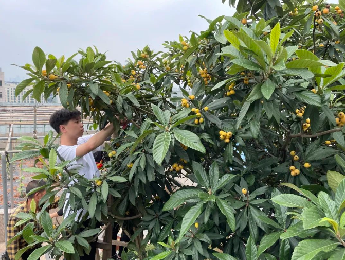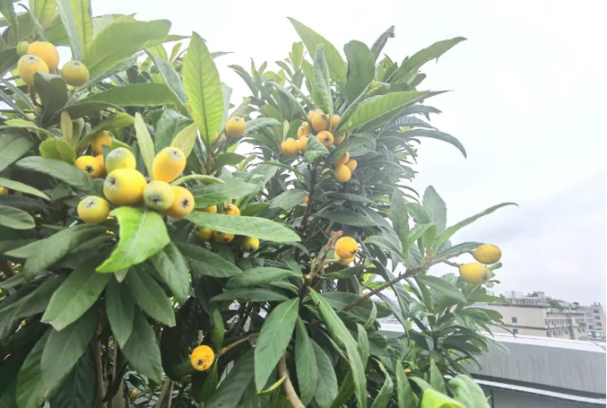 瞧!在“雙童”空中花園的枇杷林,一棵棵枇杷樹(shù)上爬滿(mǎn)了黃澄澄的枇杷,把樹(shù)枝都壓彎啦!粒大飽滿(mǎn)的枇杷果肉都快撐破果皮,讓人看著(zhù)直流口水,巴不得一躍而上,盡情品嘗這美味!
