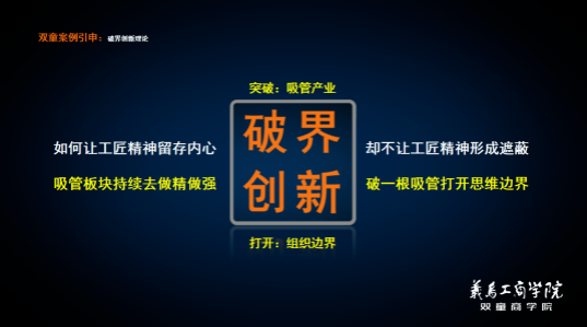 經(jīng)過(guò)長(cháng)期的學(xué)習與反思,“雙童”發(fā)生了改變,不再堅持一根吸管,而是選擇破界競爭。通過(guò)把冗余的生產(chǎn)空間、硬件和設備都充分地利用起來(lái),同時(shí)在這個(gè)過(guò)程中實(shí)現扁平化、去中心、破自我、拆圍墻、拓邊界。由此,雙童不斷涌現出內部員工主動(dòng)創(chuàng )業(yè),從原來(lái)的管理者轉身成為創(chuàng )業(yè)者。