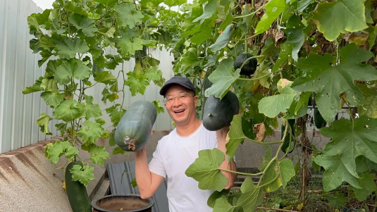 這樣的場(chǎng)景也總會(huì )吸引來(lái)“雙童”參觀(guān)的客人及媒體朋友們駐足觀(guān)賞,拍照留念,贊嘆屋頂菜園的瓜果!