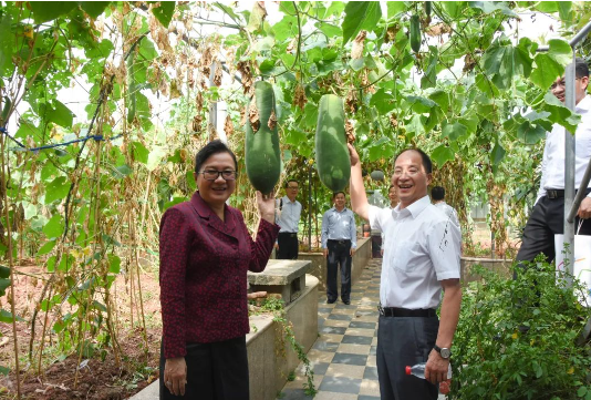 老撾工貿部部長(cháng)與“雙童”樓仲平 的屋頂菜園合影