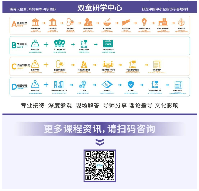“雙童”第十創(chuàng )業(yè)體——雙童研學(xué)中心,于2023年3月成立。一直以來(lái),“雙童”獨特的企業(yè)經(jīng)營(yíng)理念,吸引了眾多社會(huì )關(guān)注,每年都有大量的社會(huì )組織和高校團體等前來(lái)調研參觀(guān)。為更好地賦能,組建了雙童研學(xué)中心,系統化為更多對雙童模式感興趣的人們提供場(chǎng)景學(xué)習。