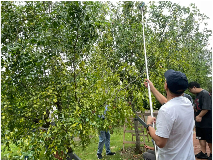 獨樂(lè )樂(lè )不如眾樂(lè )樂(lè )!在“雙童”,成熟的果子從來(lái)都是大家同享的。聽(tīng)到樓總要去屋頂打棗的消息,大家早就按捺不住喜悅的心情,三五成群,自發(fā)地提著(zhù)自己的小籃子加入到“打棗”隊伍中來(lái)!