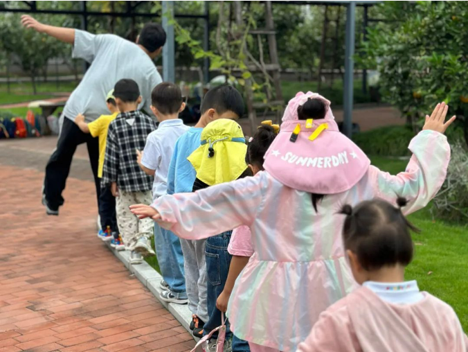 沿著(zhù)馬路牙子走“獨木橋”是小孩子獨有的樂(lè )趣