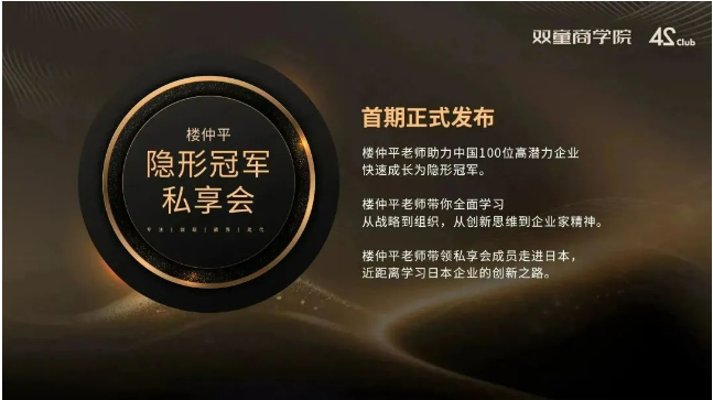 明年春季之后開(kāi)營(yíng)的第二期樓仲平·隱形冠軍私享會(huì ),將在10月份開(kāi)始正式招募。
