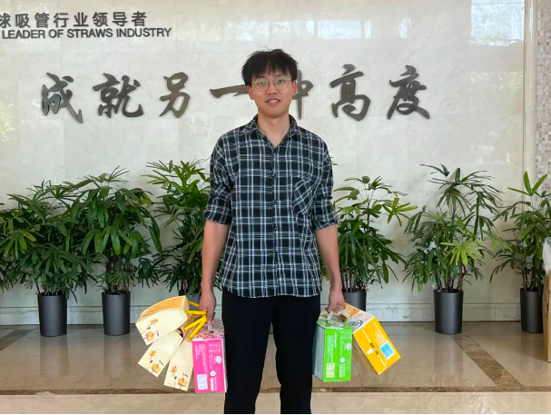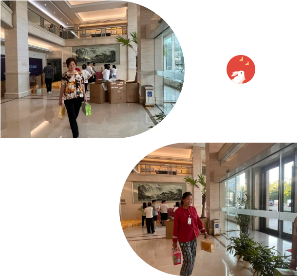 瞧,拎著(zhù)禮品的“雙童”員工臉上洋溢著(zhù)燦爛的笑容