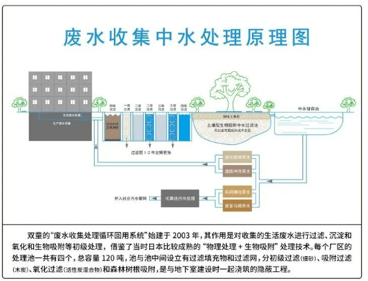 除此之外,“雙童1號樹(shù)”的土層下,還建有一個(gè)土壤層生物吸附過(guò)濾池,員工們使用后的生活廢水,經(jīng)過(guò)過(guò)濾后,會(huì )匯聚到“ 雙童一號樹(shù)”下進(jìn)行生物吸附處理。