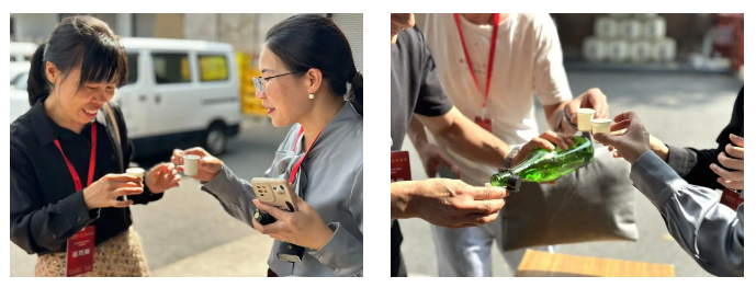 研學(xué)班學(xué)員在社長(cháng)講解下,詳細參觀(guān)了整個(gè)酒造場(chǎng)的生產(chǎn)過(guò)程。跟著(zhù)社長(cháng)“逛”了一圈兒,大家早就被酒香“陶醉了”,已經(jīng)忍不住要體驗一下了~從生產(chǎn)車(chē)間出來(lái),大家又被酒造場(chǎng)戶(hù)外的綠色深深吸引,整個(gè)酒造場(chǎng)宛若建在叢林深處,清新、宜人,精妙的綠色環(huán)保型廠(chǎng)區讓學(xué)員們紛紛化身“好奇寶寶”,迫不及待地邀請社長(cháng)答疑~