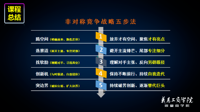 最后,樓仲平把非對稱(chēng)競爭戰略方法進(jìn)行總結,系統地展現在各位企業(yè)家面前。大家都深受啟發(fā)。
