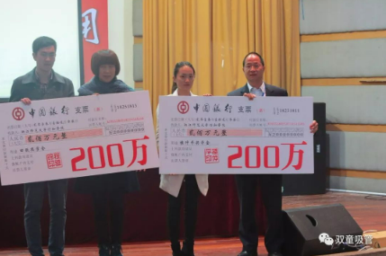 在頒獎儀式現場(chǎng),“雙童”樓仲平現場(chǎng)公布一個(gè)令全場(chǎng)沸騰的決定:年底將把獎學(xué)金基金增加為800萬(wàn)元,以幫助更多優(yōu)秀的莘莘學(xué)子!
