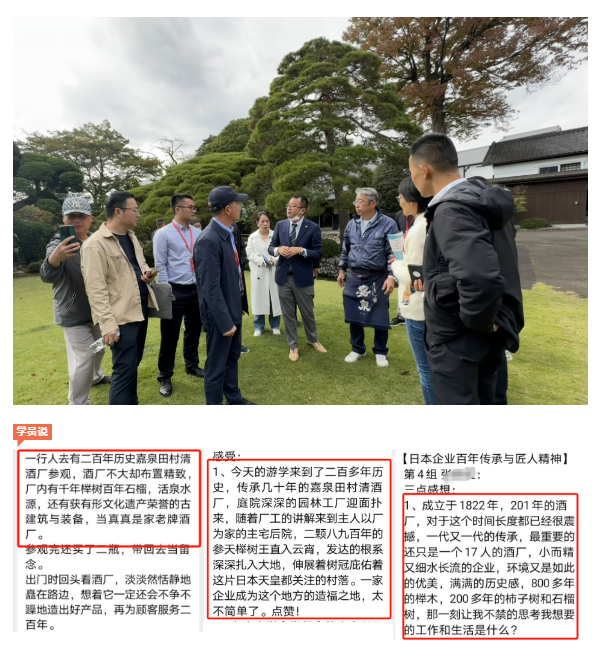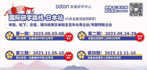 從今年9月伊始,由雙童研學(xué)中心帶領(lǐng)的《日本企業(yè)百年傳承與匠人精神》企業(yè)家研修班已完美交付了三期!