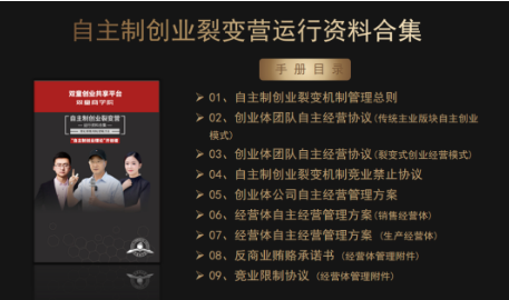 3、交付自主制創(chuàng )業(yè)裂變模式的各項規則、文本、合同等書(shū)面資料
