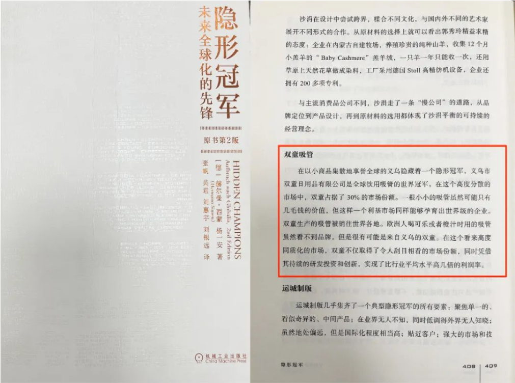 “雙童”被收錄到赫爾曼·西蒙教授《隱形冠軍》書(shū)籍中