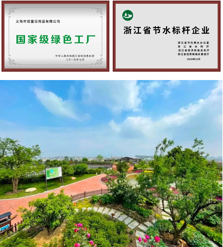 2004年,“雙童”一期廠(chǎng)房就建成了綠色生態(tài)、節能環(huán)保、無(wú)污染、無(wú)排放的花園式工廠(chǎng),整個(gè)廠(chǎng)區還配備了雨水收集利用、廢水回收處理、中水循環(huán)利用等全方位的節能降耗設施,“雙童”二期智能化工廠(chǎng)也在此基礎上進(jìn)行了大量的優(yōu)化和提升,并先后獲得“國家級綠色工廠(chǎng)”、“浙江省節水標桿”等榮譽(yù)。