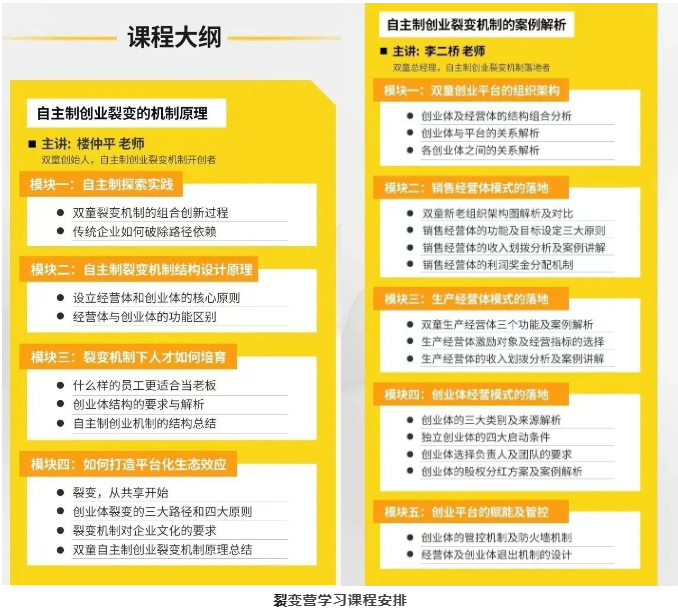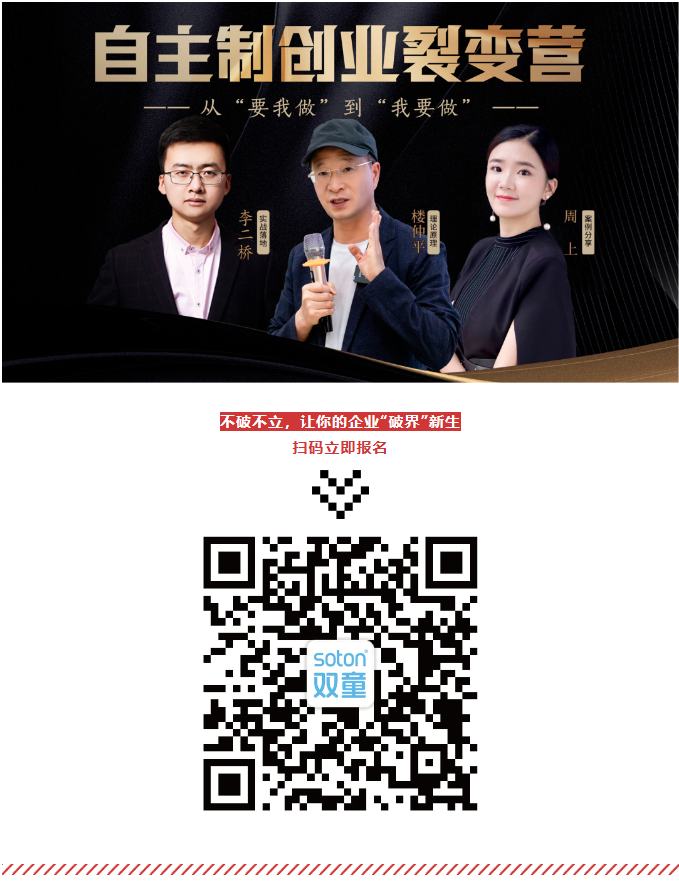 實(shí)際上,雙童商學(xué)院本打算將第2314期《自主制創(chuàng )業(yè)裂變營(yíng)》作為春節前的收官課程,但很多未報上名的學(xué)員表示,非常希望能在2024年伊始就為自己企業(yè)搭建一個(gè)可持續的激勵機制,以全新的面貌帶領(lǐng)團隊發(fā)展,所以在學(xué)員的強烈要求下,雙童商學(xué)院特意增設了2024年首期《自主制創(chuàng )業(yè)裂變營(yíng)》!