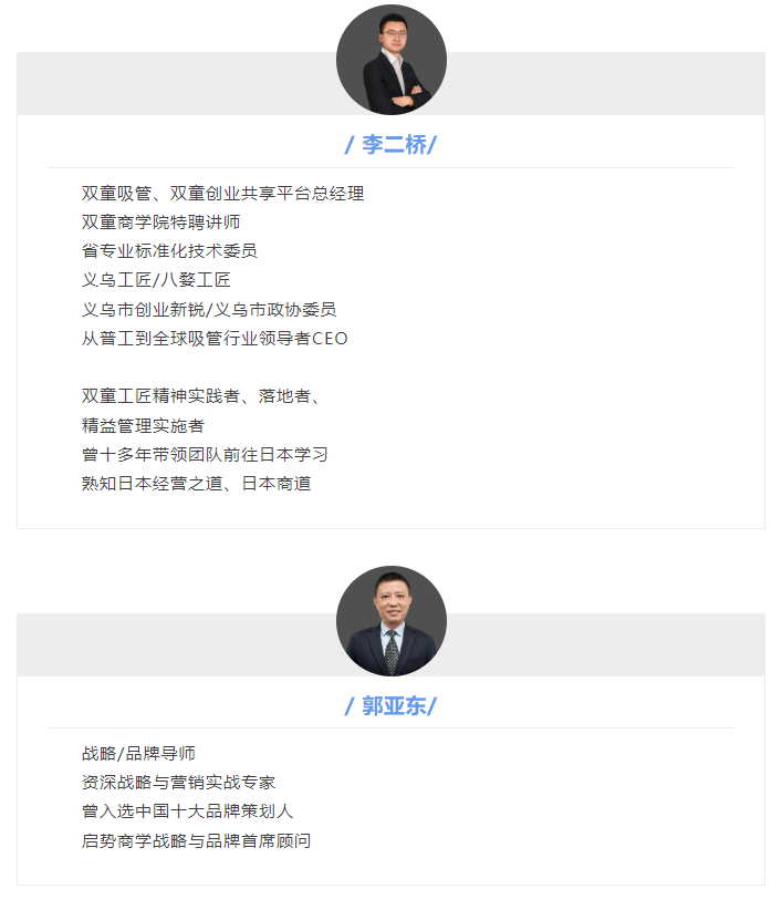 所以,2024年4月21日,雙童研學(xué)中心誠邀各位企業(yè)家朋友與雙童總經(jīng)理李二橋一起,走進(jìn)世界500強企業(yè)、百年長(cháng)壽企業(yè)、專(zhuān)精特新企業(yè),全方面學(xué)習優(yōu)秀經(jīng)營(yíng)理念,助力企業(yè)成長(cháng)!