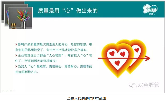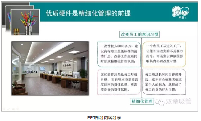 親愛(ài)的“雙童”粉絲們,你們還記得上堂課當家人樓總提到其實(shí)九樓的空中菜園、廠(chǎng)區的綠化,甚至于公司墻上的標語(yǔ)文化都和產(chǎn)品質(zhì)量有著(zhù)很大的關(guān)系嗎?今天妞就圖文并茂展示給大家看看吧!