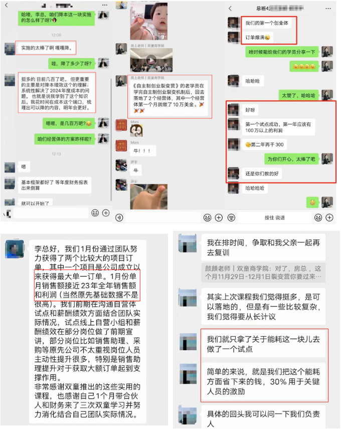 裂變機制在“雙童”取得了如此大的成就,為了幫助更多中小微創(chuàng )業(yè)者,早在2022年,雙童商學(xué)院就針對該機制打磨成《自主制創(chuàng )業(yè)裂變營(yíng)》課程,并不斷地升級迭代,現在該課程已經(jīng)是一套非常成熟的、可復制、可實(shí)踐的課程。目前已經(jīng)賦能了1600+家中小企業(yè)成長(cháng)!