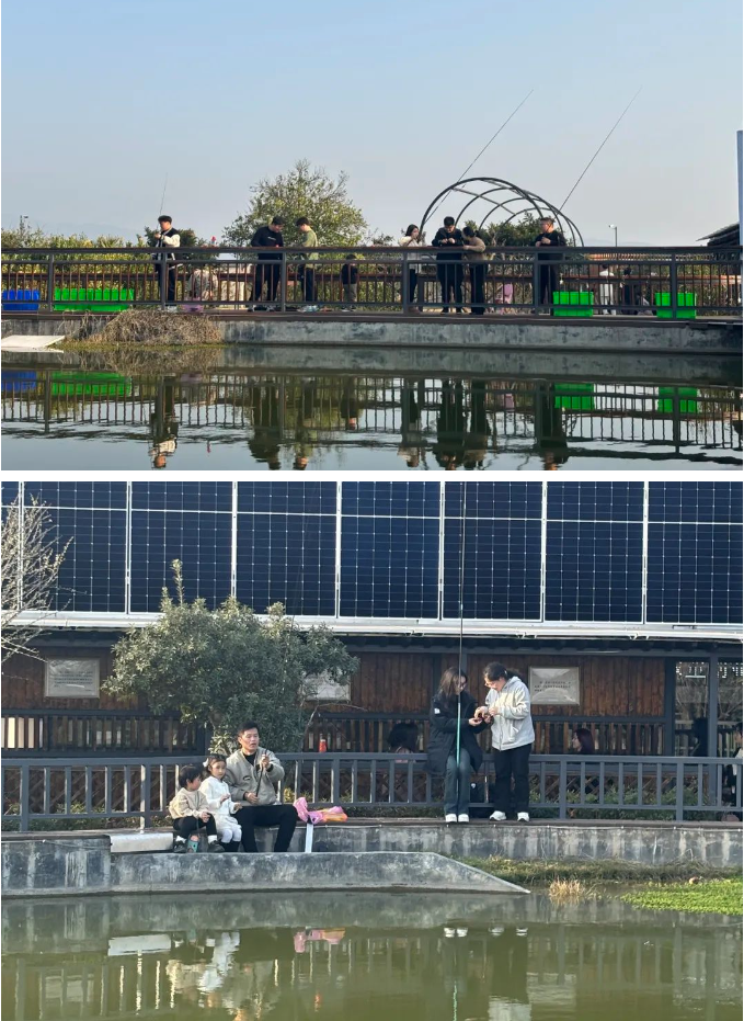 二十度的空氣里已經(jīng)褪去了冬的寒意,因又恰逢周末,所以在空中花園的各個(gè)角落都聽(tīng)得到歡聲笑語(yǔ)!這不,圍著(zhù)300多平的空中魚(yú)塘,就已經(jīng)坐著(zhù)了好幾撥兒垂釣的人,三五成群,是朋友,是家人,是父親與孩子……